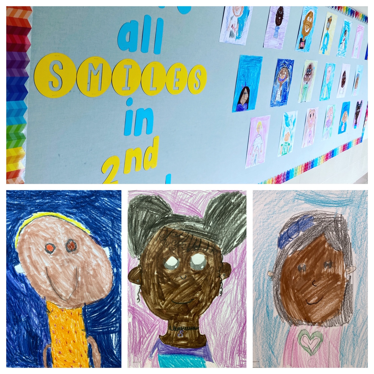 Each year, I have the class draw self-portraits the first week of 2nd grade and the last week of 2nd grade. I can’t help but giggle as they create their first masterpieces. These little 6 or 7-year-olds are so focused and create the cutest little versions of themselves! Fine motor skills develop a lot in second grade. That means when this class pulls out these self-portraits in just 9 short months, they’ll be shocked by their current “best work”. They’ll soon be giggling just like I am now!